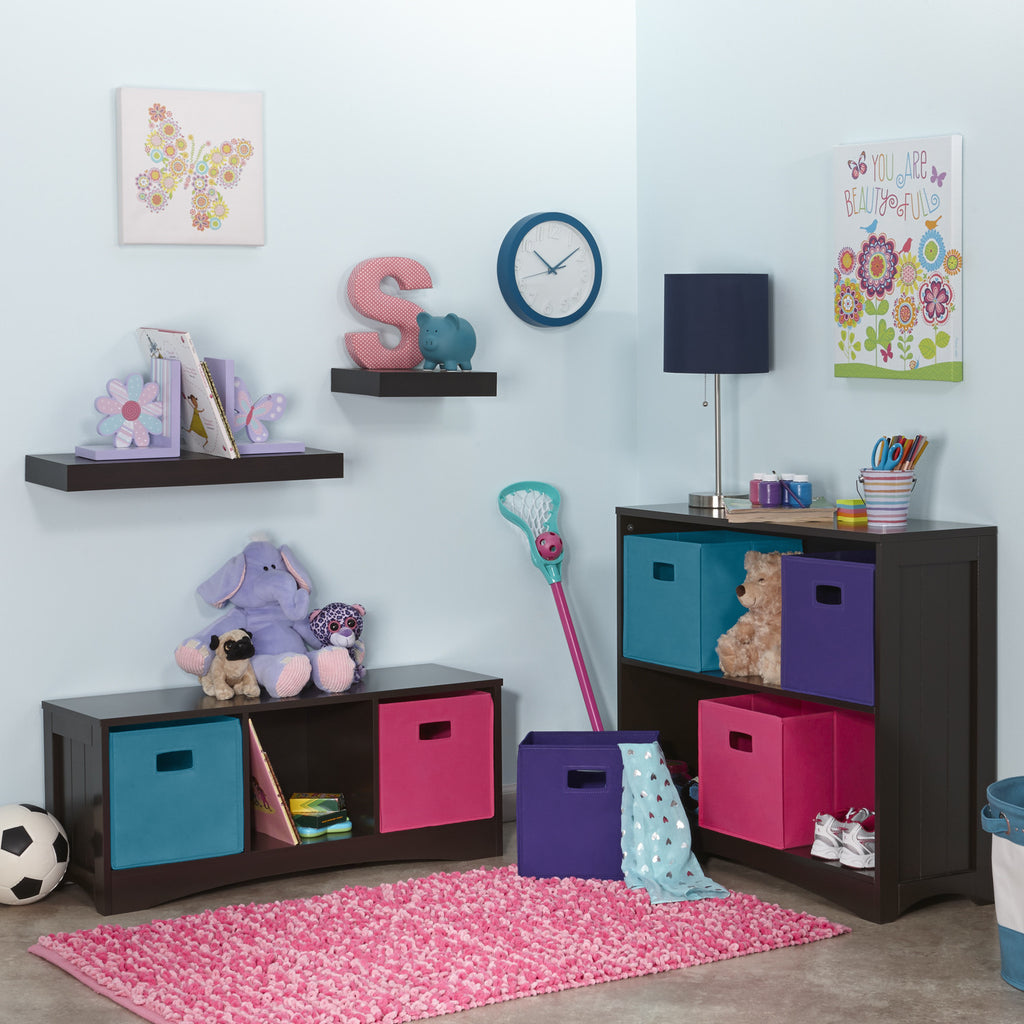 RiverRidge® HORIZONTAL BOOKCASE WITH TWO LARGE OPEN SHELVES AND TOP SHELF IS AN EASY WAY TO ADD STORAGE AND DISPLAY SPACE TO KID’S BEDROOMS OR PLAYROOMS. IT IS ALSO GREAT FOR OTHER ROOMS IN THE HOUSE LIKE THE FAMILY ROOM, ENTRYWAY OR BATHROOM. PLUS, IT HAS INSET SIDE PANELS THAT FEATURE CLASSIC BEADBOARD STYLING. COMPLETE THE LOOK WITH RiverRidge® KIDS TWO-PIECE FOLDING STORAGE BINS THAT FIT PERFECTLY ON THE SHELVES AND MATCHING RiverRidge® KIDS BENCH WITH THREE CUBBIES.