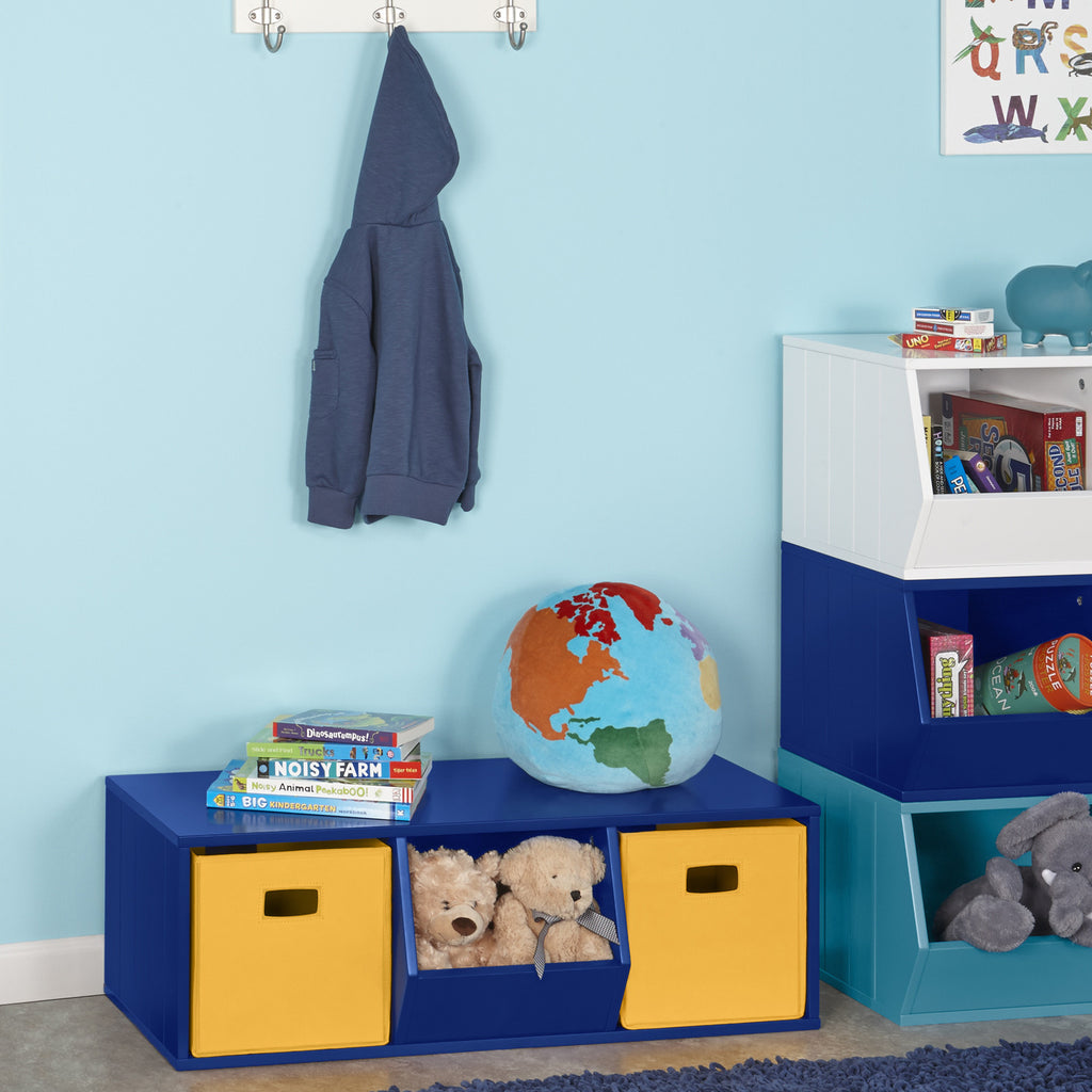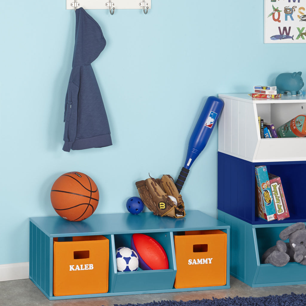 UP TO THREE DIFFERENT RiverRidge® STORAGE STACKER STYLES AND COLORS TO MAXIMIZE STORAGE SPACE IN ANY CHILDREN’S ROOM. TWO VEGGIE BINS ARE DESIGNED FOR STORING AND DISPLAYING BOOKS, TOYS AND MORE. EASY ASSEMBLY AND SOLID SAFETY BRACKET SYSTEM MAKE BUILDING, STACKING AND SECURING DIFFERENT COLORS AND STYLES QUICK AND EFFORTLESS.